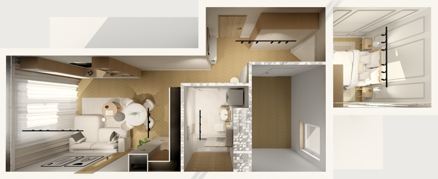 Możliwość adaptacji na 3 pokoje z aneksem kuchennym